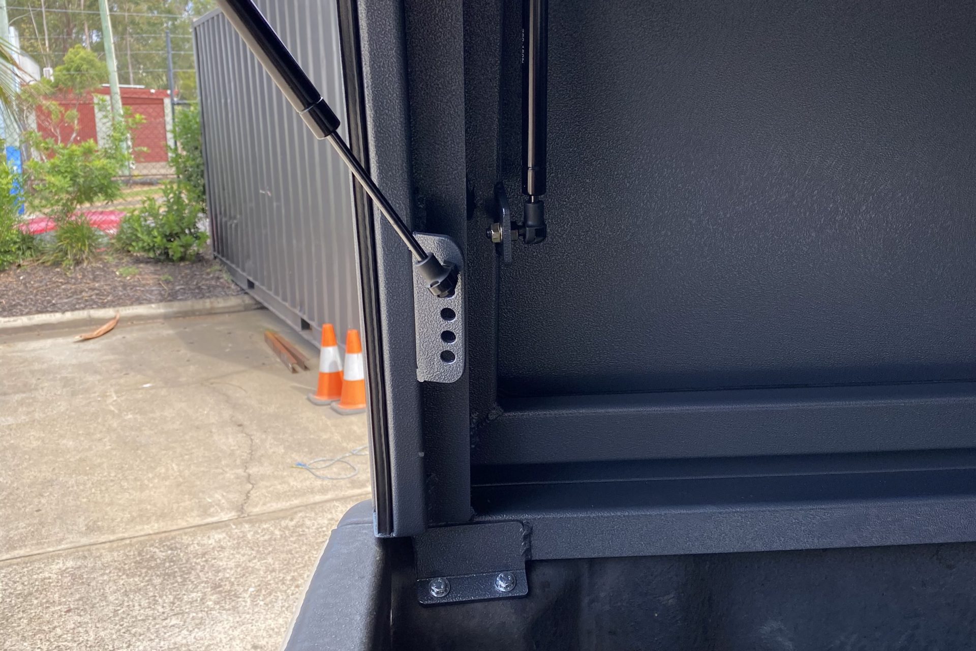 - Doors lift up on gas rams